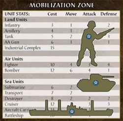 Verplaats de nieuw aangekochte eenheden van de zone mobilisatie naar het speelbord. Je kunt enkel eenheden plaatsen in velden met een industrieel complex en je moet dit veld al controleren bij het begin van je beurt.