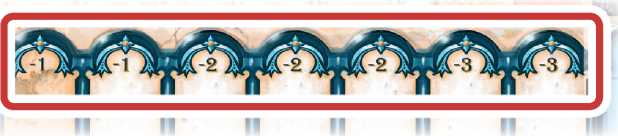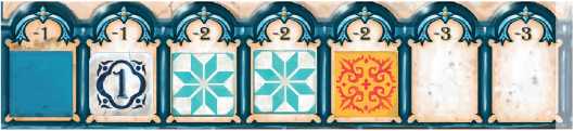 Finally, at the end of the Wall-tiling phase, check if you have any tiles in your floor line. For each tile in your floor line, you lose the number of points indicated directly above it. Adjust your scoring marker on your score track accordingly (however, you can never drop below 0 points).