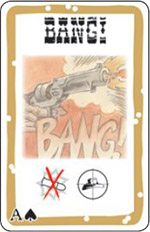 Duel: With this card you can challenge any other player (staring him in the eyes!), regardless of the distance. The challenged player may discard a BANG! card (even though it is not his turn!).