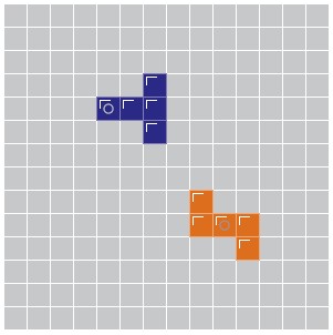 - Each new piece must touch at least one other piece of the same color, but only at the corners.