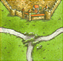 City walls start to enclose a city area, cloisters appear in the countryside and roads meander across the land, connecting some of the other features.