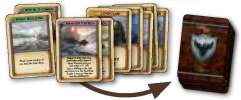 Place the Longest Road & Largest Patrol cards 1 VP side up.- Place your build cost card face up (wildling tokens depicted).