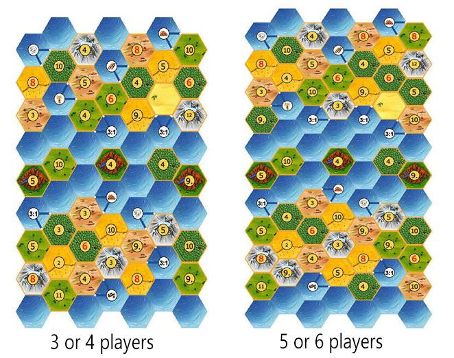 You build two settlements, as usual, but you may only build on the northern island ("home island"). One of the settlements must be built on the coast.