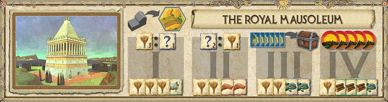 Based on the Mausoleum of Halicarnassus-In honor of her late king, a queen invited artists from far and wide to create the best monument… no expenses spared. The tomb ended up as a grand art museum, but the influx of artists severely taxed the city's grain supplies.