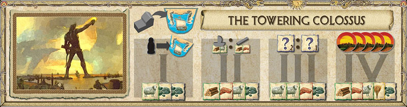 Based on the Colossus of Rhodes-We don't know if the Colossus really straddled the harbor, but we do know that it was over 30 meters high, inspiring awe from even the most grizzled of sailors. This Wonder will be sure to steal trade from all of the surrounding harbors.