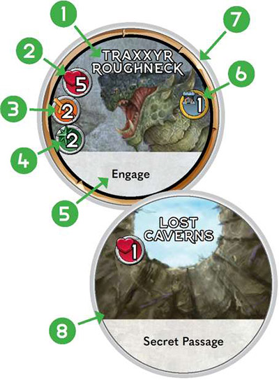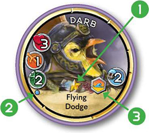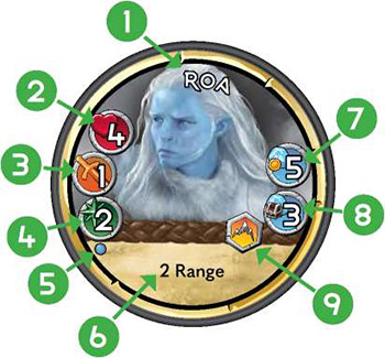 Heroes and some minions have a terrain allowance icon on their chip, indicating the types of terrain that they are able to move on. The majority of minions do not have a terrain allowance icon, as they can only move on path terrain.