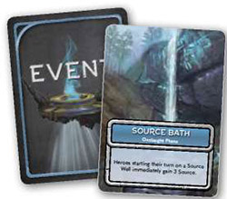 Events are cards drawn during the Event Phase. Events may alter the rules, create a side quest, or impede players in some way for the current wave.