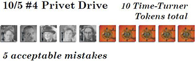 Each mission has two number parameters. The first number is the total number of turns. When setting up a mission, put this many Time-Turner tokens in the time bank and leave the rest in the box. #4 Privet Drive uses 10, just like the standard London mission. While, Diagon Alley uses 11 and Train Station uses all 12 of the Time Turner tokens.