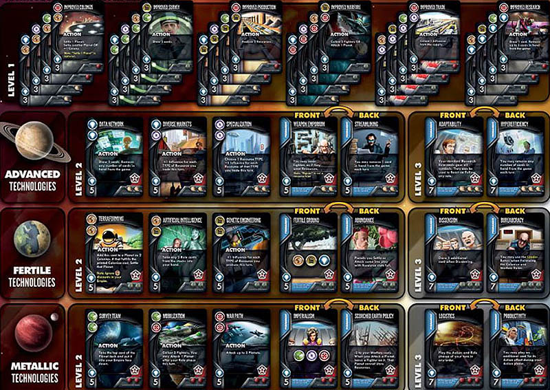 Eminent Domain is a civilization-building game in which your civilization's abilities are based on a deck of Role cards. At the beginning of the game each player has the same deck of cards, with just two cards for each Role in it.