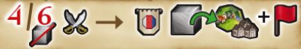 Choose a flag on the game board. If no ownership marker is present there yet, reduce the combat value by 4. If another nation's marker is already there, reduce the combat value by 6 and remove the other ownership marker from the game.