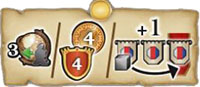 He pays a figure from his supply and takes 6 doubloons (2 for each compass symbol). Additionally, he may move his explorer up to 3 spaces.