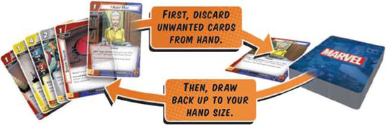 After the players have each taken a turn, the players draw up to their hand sizes and ready their cards. Then, the game advances to the villain phase.