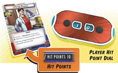 Set Hit Points. Each player sets their hit point dial equal to the starting hit points of their character, found at the bottom of their identity card.