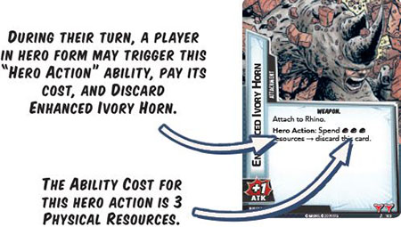 These activations resolve differently based on the player's character form. If the player is in their alter-ego form, the villain or minion schemes. If the player is in their hero form, the villain or minion attacks.