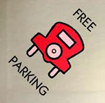 This is just a "free" resting place, so the player landing on it doesn't receive money, property, reward or penalty of any kind.
