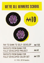 If you're managing any projects, you may self-develop one project at the beginning of your turn, before you roll. To self-develop, add a Contribution token to that Project card and pay the Bank the self-development fee on that card.