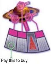 To buy it, pay the price shown on the outer board space, then put one of your Bases on to the linked hexagonal space on the planet itself. Make sure the Base has your symbol face up to show you own it!