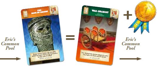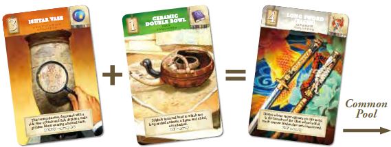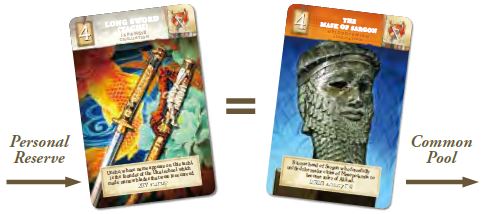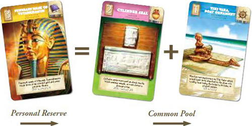 Players may pay to place any Object card from their Personal Reserve (hand) into their Museum. To place a card in your Museum, you must discard cards equal to its value (or more) from your hand into your Common Pool (your discard).