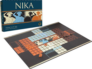 2-4 players can play Nika. Regardless of the number of players, Athens and Messene (meh-SEE-nee) (White and Blue) are always allied against Sparta and Thebes (Red and Black).