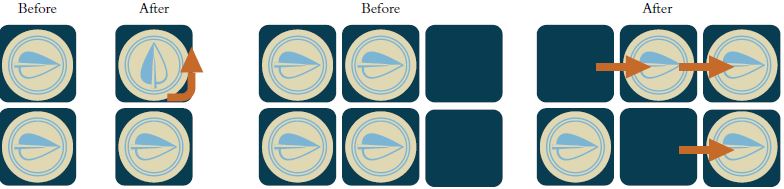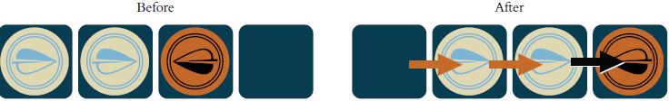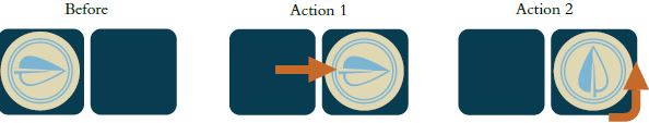 Important: Before moving a single piece, first rotate it to face the direction it is moving. This rotation happens as part of the move action; it is not a separate action.