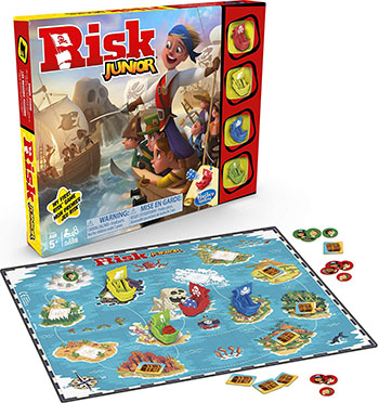 The youngest player starts and places one of the pirate tokens on the island of choice.