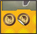 If you draw a Coin card, also discard the Territory card in card slot 4. Slide the other three Territory cards to the right and turn over the top card from the Territory draw pile and put it into card slot 1.