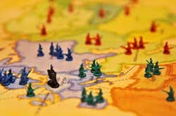 Dit spel wordt gespeeld op een bord dat wordt verdeeld in 42 gebieden en elke speler krijgt meerdere pionnen waarbij elke pion voor één leger staat.