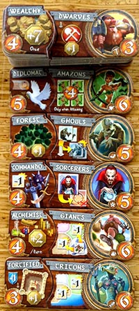 Bij het kiezen van een ras en speciale kracht, moet je hun unieke eigenschappen optimaal benutten om aangrenzende gebieden te veroveren en hierdoor overwinningsmunten te scoren voor elk gebied dat je bezet aan het einde van je beurt.