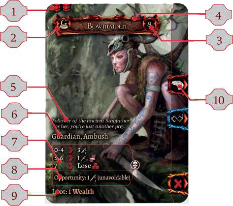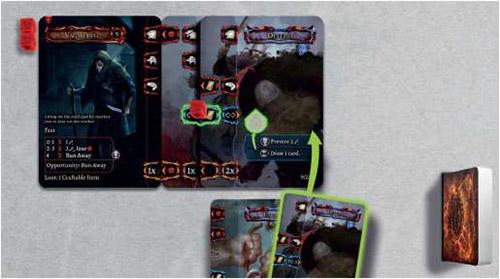 Ability. The text part of the card containing special rules, with various timings. Only Abilities that are visible (and are not covered by other cards in the Sequence) are considered active. Passive cards (see below) are never covered, so their Abilities remain in play throughout the Encounter.