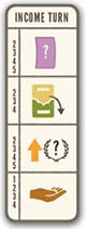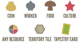 Gain income from all exposed icons for resources, territory tiles, and tapestry cards on your resource tracks. You can have at most 8 of each resource (coins, workers, food, and culture are resources).