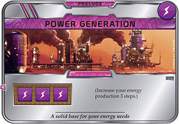 After all corporations have been played and cards paid for (step 7), there is an extra round (step 7b) where each player plays their pair of picked Prelude cards in player order, and discards their remaining 2 Prelude cards. They work like green cards, and stay in play with their tags visible.