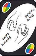 Wild Swap Hands card - When you play this card, you may choose any opponent and swap all the cards in your hand with all the cards in their hand.