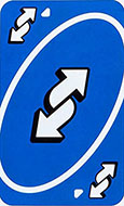 When you play this card, the direction of play reverses (if play is currently to the left, then play changes to the right, and vice versa). This card may only be played on a matching ColorADD/color or on another Reverse card. If this card is turned up at the beginning of play, the dealer goes first, then play moves to the right instead of the left.