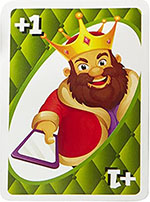 +1 Card - When this card is played, a player must draw 1 card from the draw pile. Which player depends on the kind of +1 card played. There are two kinds of +1 cards: King's Choice and Jester.