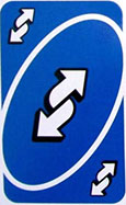 When you play this card, the direction of play reverses (if play is currently to the left, then play changes to the right, and vice versa).