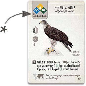 - When Placed: Place this bird sideways, so that it covers 2 [habitat] spaces. Pay the lower egg cost.